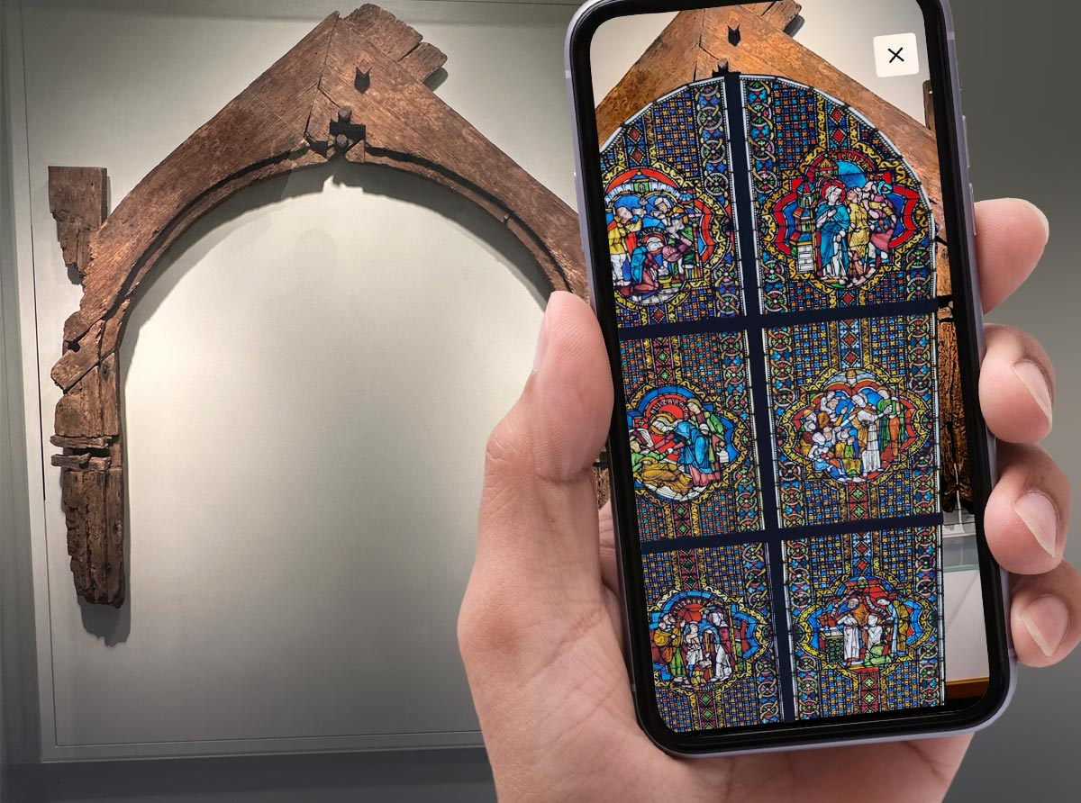 Besonders eindrucksvoll ist die Wiederherstellung verlorener Kulturschätze: Die durch Kriegseinwirkungen stark beschädigte Madonna wurde anhand historischer Schwarz-Weiß-Fotografien als 3D-Animation rekonstruiert. Ein Fensterrahmen aus dem 11. Jahrhundert wird durch AR mit einer zeitgenössischen Glasmalerei ergänzt und zeigt, wie er ursprünglich ausgesehen haben könnte.